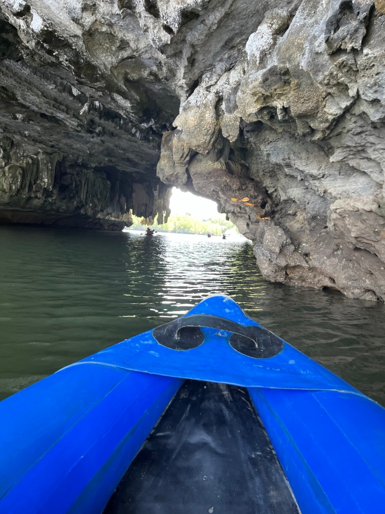 We got to go in a kayak through a rock formation to the mangroves on the other side. This was only possible at low tide.